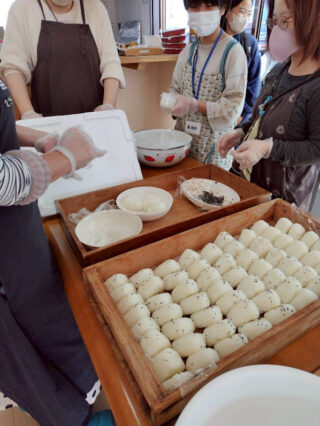 新米をご寄付で頂いたので、つやつやと輝く甘い香りの炊き立て新米を、塩おにぎりと昆布おにぎりにしました。